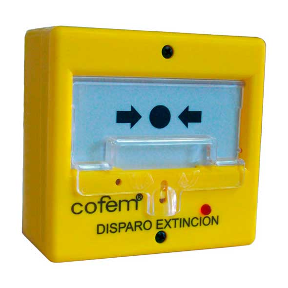 Pulsador para alarmas de incendio convencional para disparo de extinción