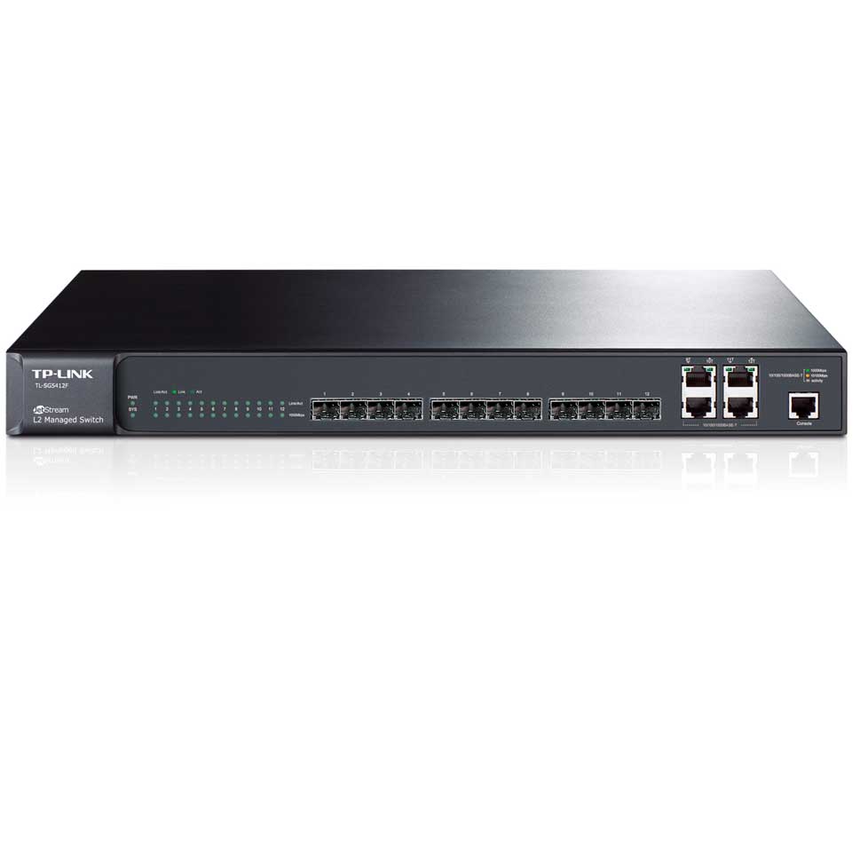 12 ranuras SFP de 1000Mbps 4 puertos RJ45 de 10/100 / 1000Mbps (negociación automática / MDI / MDIX automático) 1 puerto de consola |